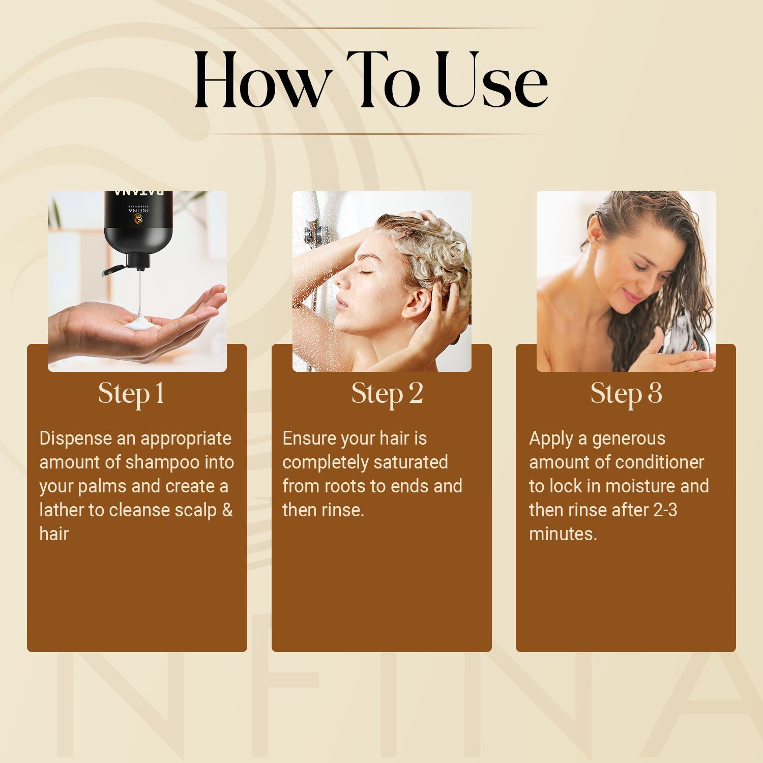 - Step 3: Ensure your hair is completely saturated from roots to ends and then rinse.