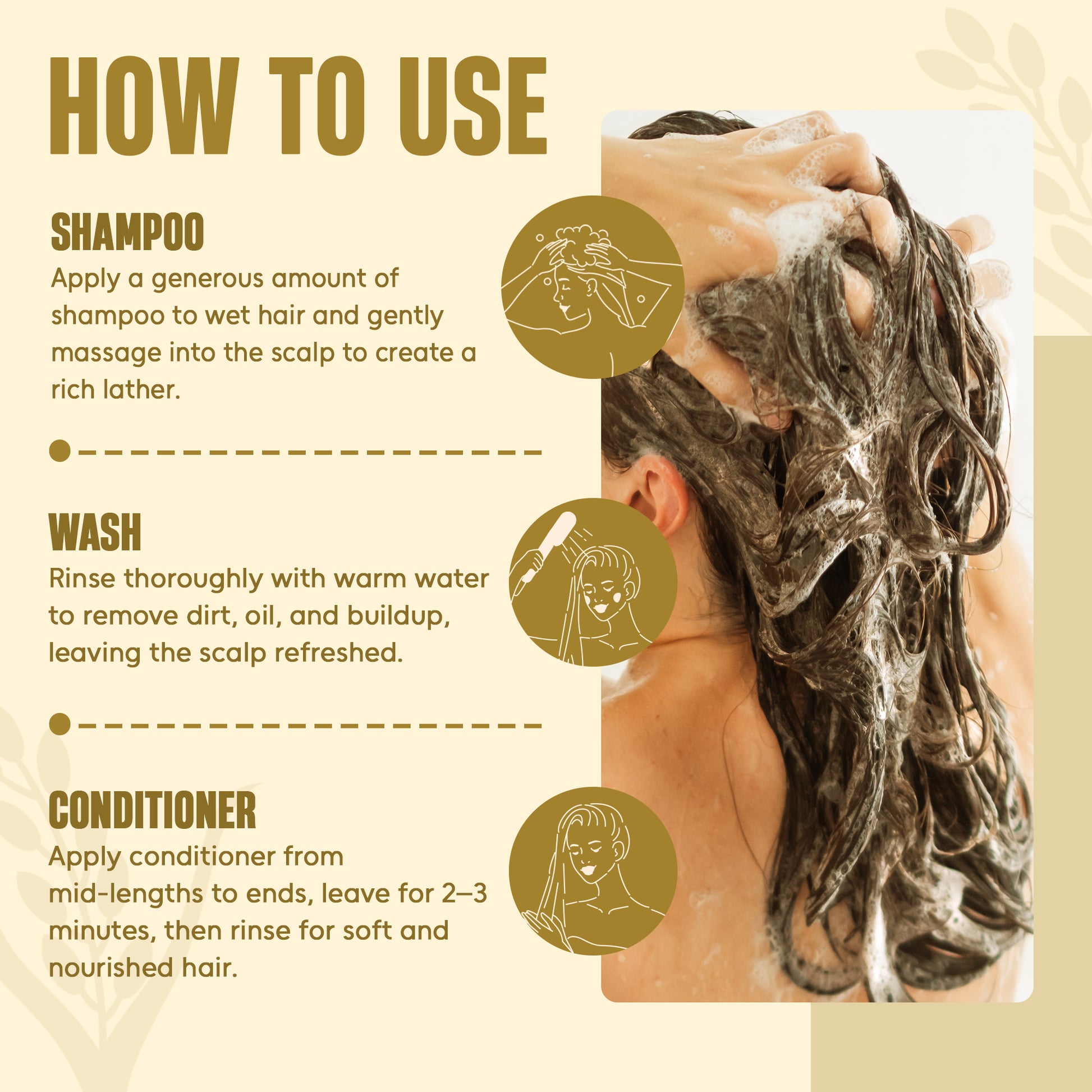 - Step 1: Dispense an appropriate amount of shampoo into your palms and create a lather to cleanse your scalp & hair